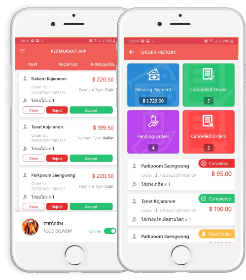 You can view all completed, pending, running and canceled order requests with all details. You can view a new order request and manage it to access/reject the option. You can manage your profile status online/offline.